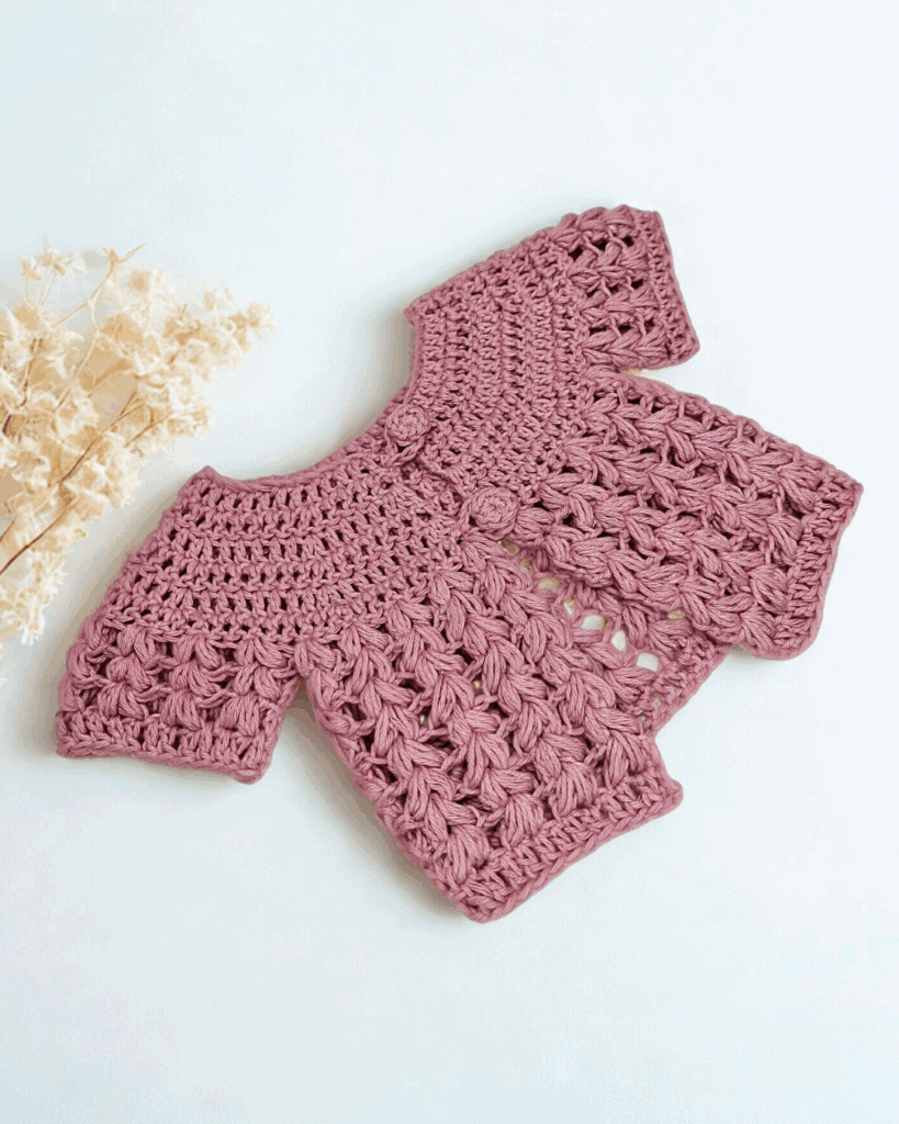 A stunning crochet baby cardigan that uses the puff stitch and gives it that unique lacy look to it, and is a perfect gift to make for our little ones!