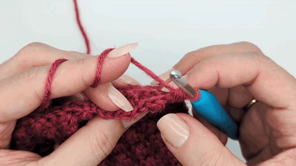 Row 3 (Single Crochet Row): Again, Chain 1 and turn. Single crochet into the first stitch. Now look carefully at your stitchesβyou’ll see “V” shapes along the top. Skip the first V (this is the chain stitch that closes the berry from the previous row). Work one single crochet into the top of the next “V” which will be your berry stitch. Then, work 1 single crochet into the next stitch, which is the single crochet from the previous row.